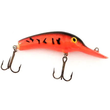 Syvälle sukeltava oranssi-musta runko määrittää tämän vintage Lindy Shadling UV -vieheen, joka on ainutlaatuinen harvinaisuus Lindy / Little Joe -mallistosta. Pituudeltaan 5 cm (2") vieheessä on selkeä mustasta oranssiin vaihtuva väritys selässä ja kyljissä, mitä korostavat tummat pystykuviot, jotka viittaavat rapu- tai tiikerikuviointiin. Isokokoinen uintilevy on integroitu saumattomasti päähän ja se sisältää etusiiman kiinnityslenkin syvemmän veden tavoittamiseksi. Tämä nimenomainen yksilö, tuotekoodilla 12984, painaa 7 g (1/4 oz) ja edustaa 1980-luvun amerikkalaista valmistusta. Keltaiseksi maalatut silmät luovat jyrkän kontrastin tummaa päätä vasten. Kunnoltaan viehe on 5/5; vaikka se on erinomaisessa kunnossa, tarkka tarkastelu paljastaa pieniä pinnallisia hankaumia uintilevyssä ja pään päällä varastoinnista johtuen. Koukkuina on kaksi alkuperäistä pronssivärjättyä kolmihaarakoukkua. Viehe on suunniteltu UV-reaktiiviseksi parantamaan näkyvyyttä hämärissä olosuhteissa tai syvissä vesikerroksissa.