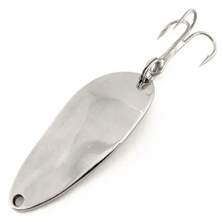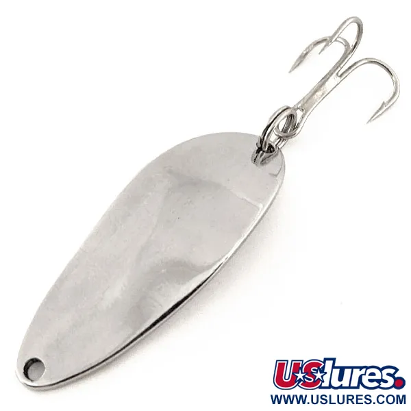 Nikkeliviimeistelyt, kuten tässä 1/3 oz (9g) lusikassa, ovat klassisen amerikkalaisen uistinpakin tunnusmerkkejä. Kooltaan 1 3/4" (4,5 cm) oleva Acme Little Cleo edustaa merkittävää palaa historiaa, ollen harvinainen siirtymäkauden malli, joka valmistettiin välittömästi sen jälkeen, kun Acme osti tuotemerkin. Käännä lusikka ympäri ja löydät selkeät syvät leimaukset: "LITTLE CLEO", "1/3 OZ" ja "WIGL LURE" -merkintä, jotka kaikki on tehty kirkkaaseen nikkelipinnoitteeseen. Tämä nimenomainen yksilö, tuotekoodiltaan 11518, on huippukunnossa ja on saanut 5/5-luokituksen poikkeuksellisen hyvin säilyneestä kiillostaan ja puhtaista leimoistaan. Rakenne koostuu kiinteästä metallirungosta, jossa on siiman kiinnitysreikä edessä ja tukeva kolmihaarakoukku takana uistinrenkaalla varmistettuna. Se on edelleen täydellinen esimerkki USA-valmisteisen aikakauden lusikkauistimista, jota keräilijät arvostavat sen erityisten merkintöjen ja valmistushistorian vuoksi.