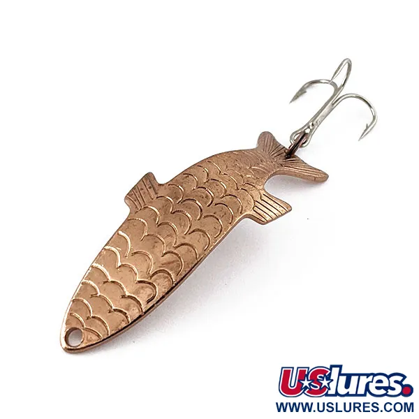 Tämä klassinen 7 gramman (1/4 oz) lusikkauistin on varustettu syvään stanssatulla suomukuvioinnilla, joka luo selkeän kolmiulotteisen efektin. Yhdysvalloissa Acmen valmistaman vieheen sileälle kääntöpuolelle on stanssattu selkeästi nimi ”PHOEBE”. Kiinteä kupariviimeistely on säilynyt kirkkaana koko 5 cm (2”) pituudelta, ja viehe on saanut kuntoluokituksen 5/5 puhtaan pintansa ja näkyvän kulumisen puutteen ansiosta. Tuotekoodilla 17793 tunnistettava metallirunko on muotoiltu realistiseksi kalaprofiiliksi, jossa on erottuvat evät ja kaareva pyrstö. Takaosaan on kiinnitetty uistinrenkaalla vankka kolmihaarakoukku, ja nokassa on yksi siiman kiinnityspiste. Sen hydrodynaaminen rakenne on suunniteltu monipuoliseen käyttöön, ja se toimii luotettavasti niin hitaassa kelauksessa matalassa vedessä kuin syvemmälle heitettäessä.