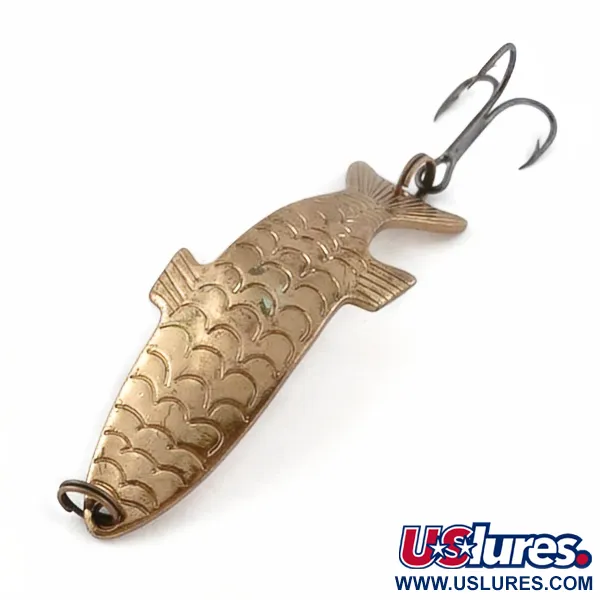 Kuparinsävyt dominoivat tämän 7 gramman (1/4 oz) metallisen lusikkauistimen pintaa, mikä on tyypillistä Acme Phoeben ajattomalle muotoilulle. Tässä 5 cm (2 tuuman) yksilössä, tuotekoodilla 23908, on tarkka stanssattu suomukuvio, joka luo elävän kolmiulotteisen vaikutelman vedessä liikkuessaan. USA:ssa valmistetun uistimen kaareva runko on suunniteltu sekä syvään että matalaan kalastukseen, ja se mukautuu hyvin eri kelausnopeuksiin. Metallipinta on puhdas ja erinomaisesti säilynyt, saaden kuntoluokituksen 5/5. Varusteluun kuuluu tukeva uistinrengas nokassa ja tumma kolmihaarakoukku perässä. Keräilijät arvostavat kalanmuotoisen rungon selkeitä yksityiskohtia ja kuparivärin lämpöä, joka tarjoaa hillitymmän välkkeen kromattuihin vaihtoehtoihin verrattuna.