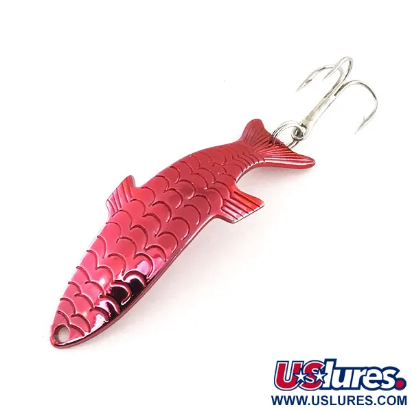 Pink Metallic -pinnoite peittää tämän klassisen Acme Phoebe -lusikan meistetyn metallirungon. Tämä malli on ollut yhdysvaltalaisten kalastajien suosiossa jo pitkään. Vieheen pituus on 2" (5 cm), paino 1/4oz (7 g) ja tuotekoodi 9153. Etupinnalle on ominaista yksityiskohtainen suomukuvio ja kohokuvioidut evät, jotka luovat kolmiulotteisen vaikutelman vedessä uitettaessa. Sen ainutlaatuinen hydrodynaaminen muoto on suunniteltu toimimaan eri syvyyksissä, kalastettiinpa sitä nopeasti matalikkojen päällä tai hitaammin syvissä montuissa. Kääntöpuolelle on selkeästi meistetty valmistajan nimi kiillotettuun pintaan. Arvosanalla 5/5 viimeistely on poikkeuksellisen siisti ja säilyttää korkeakiiltoisen heijastavuutensa koko profiilissa. Varustukseen kuuluu kirkas hopeinen uistinrengas ja terävä kolmihaarakoukku pyrstössä.
