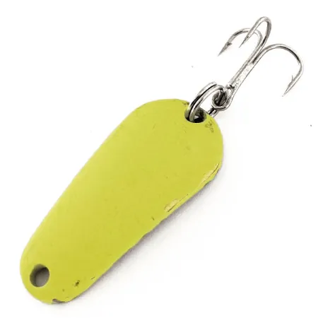 Tämä Yhdysvalloissa valmistettu 7 gramman (1/4 unssia) painoinen lusikkauistin on kompaktin muotoilunsa ansiosta monikäyttöinen valinta eri vesisyvyyksille. Aeroplane Spinner on suunnitellut Aero UV -mallin (tuotekoodi 11824), jonka 3,7 cm:n (1 1/2") runko on viimeistelty Chartreuse / Kulta -värityksellä. Tämä fluoresoiva pinnoite on kehitetty erityisesti reagoimaan ultraviolettivaloon, mikä antaa voimakkaan vihreän luminesenssin ja takaa erinomaisen näkyvyyden hämärissä olosuhteissa. Varustukseen kuuluu vankka uistinrengas ja terävä kolmihaarakoukku, jotka noudattavat perinteisen amerikkalaisen kalastusvälinevalmistuksen korkeita laatustandardeja. Kuntoarviolla 5/5 vieheessä on vain vähäisiä jälkiä maalipinnassa, ja sen kiilto on säilynyt erinomaisena. Pisaramainen muoto ja vankka metallirakenne edustavat toiminnallista muotoilua kalastajille, jotka tavoittelevat lajeja, joille värin tuoma houkutusvaikutus on avainasemassa.
