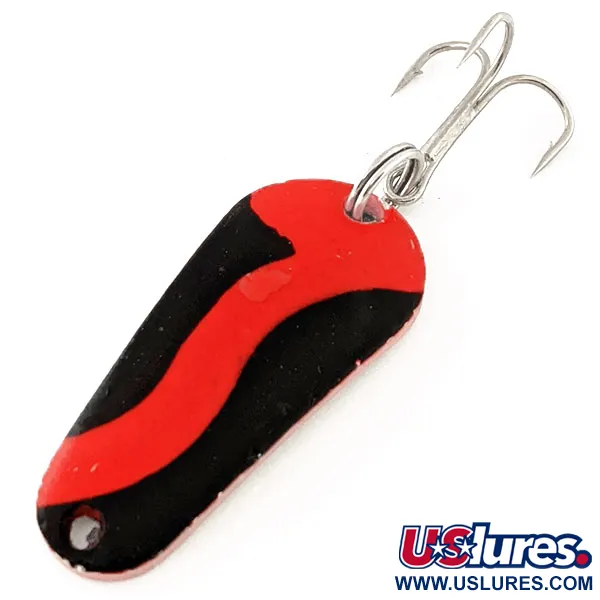 Tämä kullanvärisellä pohjalla olevaan rohkeaan musta-punaiseen aaltokuvioon puettu uistin edustaa klassista Aeroplane Spinner -estetiikkaa. USA:sta kotoisin olevassa Aero UV -mallissa on erityinen fluoresoiva pinnoite, joka reagoi voimakkaasti ultraviolettivaloon. Se painaa monikäyttöiset 7 g (1/4 oz) ja on pituudeltaan 3,7 cm (1 1/2"), mikä tekee siitä standardin heittovieheen useille makean veden lajeille. Kolmihaarakoukku on kiinnitetty tukevasti kestävällä uistinrenkaalla, mikä takaa rakenteen lujuuden. Tämä yksilö, tuotekoodiltaan 12055, on kuntoluokitukseltaan 5/5, ja siinä on siisti viimeistely sekä kirkkaat värit. Syvän mustan ja hehkuvan punioranssin raidan välinen kontrasti luo selkeän visuaalisen ärsykkeen hämäriin olosuhteisiin.