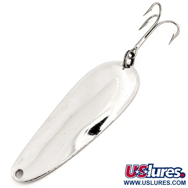 Tasan 1/2 unssia (14 g) painava amerikkalaisen kalastushistorian klassikko on varustettu kirkkaalla nikkeliviimeistelyllä, joka on säilynyt erittäin kirkkaana. Pisaranmuotoinen runko on pituudeltaan 2 3/4" (7 cm), ja siinä on alkuperäiset tehdasvarusteet, mukaan lukien tukeva uistinrengas ja terävä kolmihaarakoukku peräpäässä. Koveralla puolella Aqua Spoon on selkeästi leimattu nimellään ja tekstillä "MADE IN U.S.A.", mikä on usein keräilijöiden etsimä yksityiskohta tutkittaessa vuosisadan puolivälin Nebco-tuotantoa. Tämä tuotekoodilla 12969 varustettu yksilö on 5/5-kunnossa, ja siinä on erittäin heijastava pinta ja puhtaat reunat. Tämän lusikkauistimen yksinkertainen ja toimiva muotoilu korostaa aikakauden suoraviivaisia valmistusstandardeja.