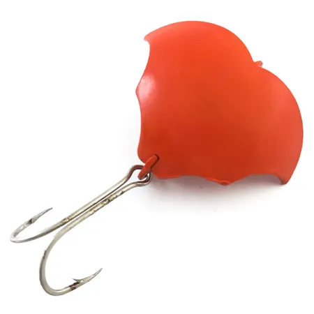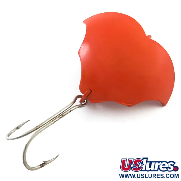 Eloisa oranssi pigmentti peittää tämän amerikkalaisvalmisteisen Harrison Industries -vieheen ainutlaatuisen, lepakkomaista profiilia, joka painaa 1/2 oz (14 g). Suoraan valetun siiven yläpinnalle kohokuvioitu "Baby Bat" -nimi yksilöi tämän nimenomaisen mallin, joka on luetteloitu tuotekoodilla 5223. Pituudeltaan 1 1/2" (3,5 cm) oleva kompakti muotoilu sisältää näkyvän pystysuoran vakautusevän ja leveän, kampasimpukkamaisen siipivälin, joka on tarkoitettu pinta-uittoon. Varustukseen kuuluu vankka kaksoiskoukku, joka pysyy tukevasti kiinni takasilmukassa. Erinomaisen 5/5-kuntonsa ansiosta pinta on edelleen kirkas eikä siinä ole kulumisen merkkejä. Tämä yksilö korostaa vuosisadan puolivälin amerikkalaista mieltymystä uudenlaisiin, eläinaiheisiin malleihin, jotka on valmistettu kestävyyttä ja heitettävyyttä silmällä pitäen.