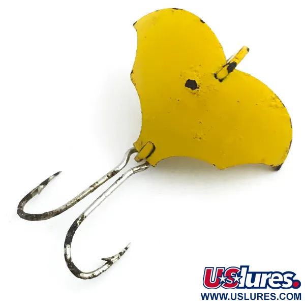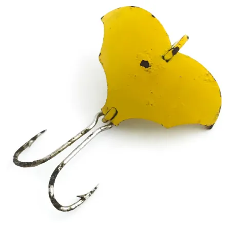 Tämä metallista meistetty ja kirkkaankeltaiseksi viimeistelty 5 gramman (3/16oz) viehe edustaa Prescott Spinner -yhtiön ainutlaatuista muotoilufilosofiaa. Tasan 2,5 cm (1") pitkä Baby Bat on varustettu kolmisiipisellä rakenteella, joka luo sille ominaisen siluetin. Tässä yhdysvaltalaisvalmisteisessa uistimessa, tuotekoodiltaan 5455, on suuri kaksoiskoukku kiinnitettynä pyrstöosan alapuolelle. Keräilijät arvostavat 4/5-kuntoluokitusta, jossa on huomioitu pienet maalivauriot reunoissa ja keskiharjanteella, josta metalli on näkyvissä. Yläpuolinen kiinnityslenkki on avoin ja valmis siiman kiinnitykseen, ja keltainen emalipinta on säilyttänyt hyvin alkuperäisen kiiltonsa.