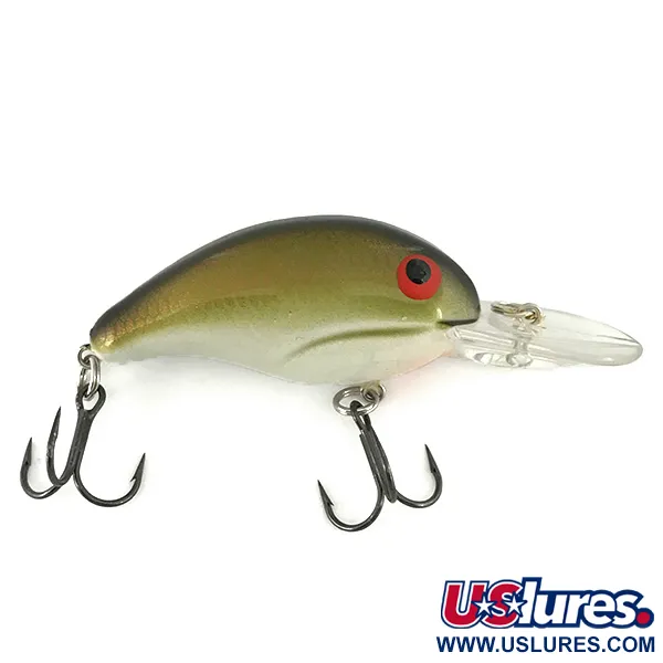 Tämä 8,5 g (1/3 oz) painava vaappu saavuttaa jopa 3 metrin (9,8 ft) syvyyden ja on suunniteltu pohjan koluamiseen rakenteiden seassa heittäen tai uistellen. Bandit 200, tuotekoodiltaan 7077, omaa klassisen oliivinvihreän ja kultaisen selän, joka vaihtuu vaaleisiin, helmiäishohtoisiin kylkiin. Kurkun lähellä vatsassa on selkeä oranssinpunainen sävy, joka toimii hienovaraisena iskupisteenä kuhalle ja hauelle. Kirkas muovinen uintilevy on integroitu 5 cm (2") runkoon, jonka sisällä on räminäkoneisto äänihoukuttimena. Terävät mustat nikkelikolmihaarakoukut on kiinnitetty tukevilla uistinrenkailla vatsa- ja pyrstölenkkeihin. Tämä yksilö on 5/5-kunnossa, ja sen alkuperäinen hohde sekä amerikkalaisen valmistuksen laatu ovat säilyneet täydellisesti. Kirkkaanpunaiset silmät on upotettu syvälle päähän, ja ne erottuvat selvästi maalauksen maanläheisistä sävyistä. Vieheen kelluvuus mahdollistaa sen nousemisen pois esteistä, kun kelaus pysäytetään.