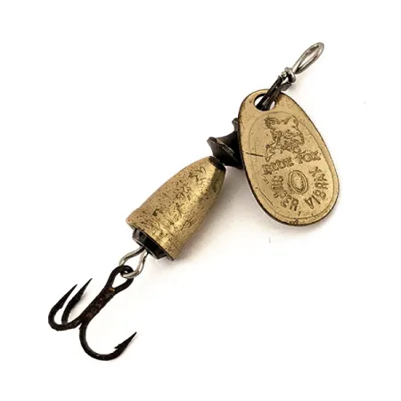Suoraan messinkilippaan stansattu alkuperäinen Blue Fox -logo ja "Super Vibrax" -teksti merkitsevät tämän klassiseksi koon 0 lipaksi. Painoltaan 3,4 g (1/8 oz) oleva kompakti viehe on tasan 4,5 cm pitkä ylälenkistä kolmihaarakoukun mutkaan. Pisaranmuotoisen rungon ja soikean lipan ikääntynyt messinkipinta heijastaa sen aitoa vintage-luonnetta (kuntoarvio 4/5). Lipan kääntöpuolella on "MADE IN FINLAND" -kaiverrus sekä US-patentti 4163338, joka viittaa siiman kiertymistä estävään rakenteeseen. Kellomaisen rungon sisällä on koneisto, joka synnyttää matalataajuista ääntä, kun ulkokuori osuu siihen kelauksen aikana. Tässä mallissa (tuotekoodi 13178) on ikoninen messinkiviimeistely, joka on pitkään ollut perusvalinta kirkkaiden vesien taimenelle ja ahvenelle. Osat ovat kestäviä: alkuperäisessä tummapintaisessa kolmihaarakoukussa on hyvä pito ja se on tukevasti kiinni rungossa. Nämä vanhemmat Suomessa valmistetut mallit ovat keräilijöiden arvostamia messinkikellon erityisen resonanssin ja tarkan viimeistelyn vuoksi.