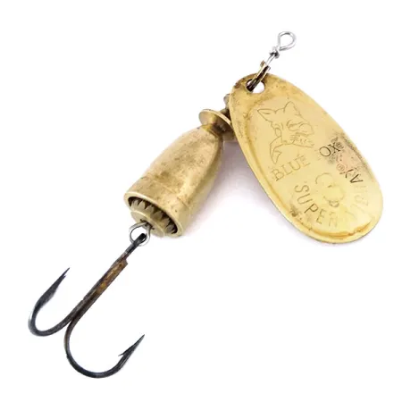 Messinkilipan alapuolelle on selkeästi meistetty "MADE IN FRANCE" -alkuperämerkintä, joka on tunnusomaista tämän 6 cm (2 1/4") lipan varhaisemmille tuotantoerille. 8 g (1/4 oz) paino on keskitetty erottuvaan kaksiosaiseen messinkirunkoon, jossa on tunnusomainen hammasratasmainen sisäkello, joka on suunniteltu resonoimaan ulkokuoren kanssa. Tässä nimenomaisessa yksilössä, tuotekoodiltaan 10514, on yhtenäinen messinkiviimeistely sekä pisaranmuotoisessa lipassa että painotetussa kellossa. Lipan etupuolta koristaa kohokuvioitu ketunpäälogo ja Super Vibrax -brändäys, kun taas kääntöpuolella on US PAT. 4163336 -leima. Kuntoluokitukseltaan 4/5 oleva uistin on säilyttänyt ikänsä tuoman puhtaan ja pehmeän hohdon, ja sen metalliosat sekä runkolanka ovat suorat ja toimivat. Perässä on tukeva kolmihaarakoukku valmiina käyttöön. Kellon sisäinen rakenne on tekninen ominaisuus, joka on suunniteltu minimoimaan siiman kiertyminen käytön aikana, mikä heijastaa aikakauden ranskalaista valmistustarkkuutta.