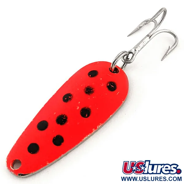 Tämä Yhdysvalloissa valmistettu 1/2 unssin (14 g) Blue Fox -lusikkauistin on muotoiltu pisaramaiseksi tehokkaita heittoja varten. Tor-P-Do UV -malli on tarkalleen 2 tuumaa (5 cm) pitkä, ja sen tuotekoodi on 12795. Siinä on voimakaskontrastinen punainen etuosa mustilla pisteillä ja nikkelöity tausta. Vieheen tekninen erikoisuus on fluoresoiva, UV-reaktiivinen pinnoite, joka hohtaa ultraviolettivalossa parantaen näkyvyyttä sameassa vedessä tai hämärässä. Vankka uistinrengas yhdistää rungon kiillotettuun nikkeliseen kolmihaarakoukkuun, mikä takaa varman tartutuksen. Jokainen yksityiskohta maalipinnasta koukkuihin on erinomaisessa 5/5-kunnossa. Yksinkertainen muotoilu mahdollistaa kalastuksen eri syvyyksissä, ja painava runko uppoaa nopeasti. Päässä oleva valmis reikä tarjoaa tukevan kiinnityspisteen siimalle tai lukkoleikarille.