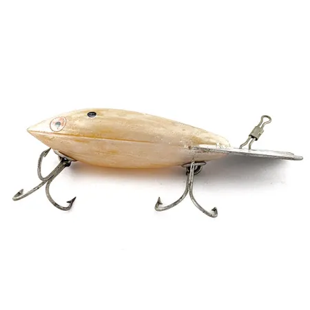 Tämän 1970-luvun Bomber 400 -sarjan vaapun muovirunkoa peittää kustomoitu helmiäisväri, mikä korostaa sen ainutlaatuista keräilyarvoa. Viehe on 8 cm (3 1/4") pitkä ja painaa 14 g (1/2 oz). Tämä kelluva ja rämisevä yksilö on suunniteltu sukeltamaan jopa 2 metrin (6,5 jalan) syvyyteen. Erityisessä metallisessa perärakenteessa on integroitu leikari ja uintilevy, mikä on tyypillistä valmistajan varhaiselle suunnittelulle hauen, ahvenen ja toutaimen kalastukseen. Kuntoluokitus on siisti 4/5; rungossa on kevyitä varastoinnin jälkiä, jotka kertovat sen vintage-historiasta vaikuttamatta osien toimivuuteen. Tällaiset muovimallit edustivat merkin siirtymää kohti kestäviä synteettisiä materiaaleja säilyttäen kuitenkin keräilijöiden suosiman klassisen profiilin. Vieheessä on yksinkertaiset maalatut silmät, ja se tunnetaan tuotekoodilla 19531. Siinä on kaksi vatsaan kiinnitettyä kolmihaarakoukkua, jotka soveltuvat perinteiseen heitto- ja vetouisteluun.