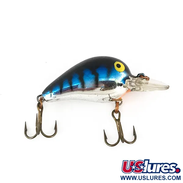 Tämä hohtavan sinisellä Blue Metallic -viimeistelyllä varustettu ultrakevyt vaappu edustaa klassista korkearuumiista siluettia, joka on määritellyt BOMBER-perintöä vuosikymmenten ajan. Tämä tuotekoodilla 7826 tunnistettu yksilö on pituudeltaan kompakti 1 1/4" (3 cm) ja painaa vain 1/16 oz (2 g), mikä tekee siitä erikoistyökalun ahvenen ja turvan kalastukseen. Muotoiluun kuuluu kirkas uintilevy, joka on säädetty saavuttamaan 1,2–1,8 metrin (4–6 ft) syvyys heittokalastuksessa. Ulkoasultaan vieheessä on näyttävät tummat pystyraidat sinisessä liukuvärissä, joka vaihtuu heijastavaan hopeiseen vatsaan. Kokonaisuuden täydentävät suuret, keltamustat silmät. Kelluvana mallina se on suunniteltu matalan veden kalastukseen, jossa tarkkuus on avainasemassa. Rungon ja koukkujen kunto on poikkeuksellinen ja erittäin hyvin hoidettu, ansaiten arvosanan 5/5. Amerikkalaiset juuret näkyvät tukevassa siimalenkissä ja alkuperäisissä pronssiviimeistellyissä kolmihaarakoukuissa.