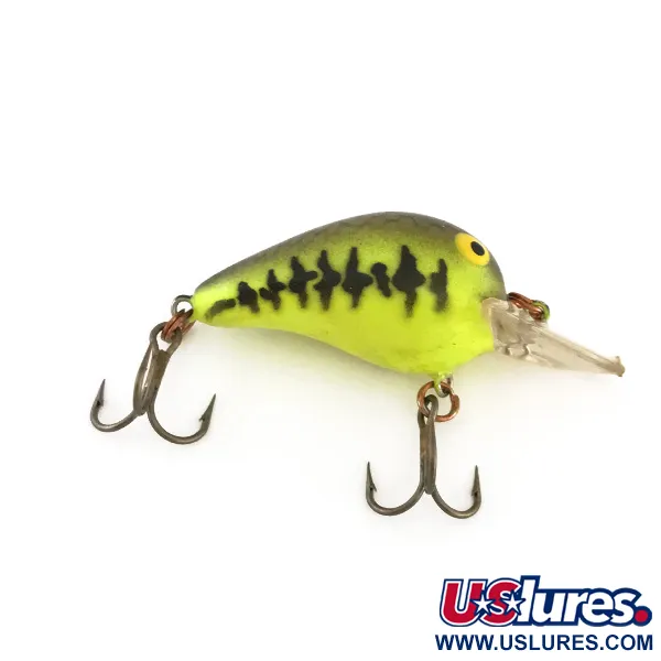 Pysähdyksissä pinnassa kelluva 1/16 unssin (2 g) painoinen ultrakevyt vaappu on tarkkuustyökalu kevyen kalastuksen harrastajille. Bomber Fat A B03F, tuotekoodiltaan 7859, on viimeistelty CBB Baby Bass -värikuvioinnilla. Visuaalinen profiili koostuu kirkkaasta kelta-chartreuse-pohjaväristä, jota täydentävät tummat pilkulliset kuviot, jotka jäljiteltävät nuoren ahvenen siluettia. UV-valossa viimeistely hohtaa selvästi, mikä parantaa näkyvyyttä sameassa vedessä tai hämärässä kalastettaessa. Rungon pituus on 1 1/4" (3 cm), ja siinä on kirkas uintilevy, joka on suunniteltu viemään viehe 1,2 - 1,8 metrin (3,9 - 5,9 ft) syvyyteen. Tämä matalauintinen yksilö on varustettu kahdella pronssiviimeistellyllä kolmihaarakoukulla ja se on luokiteltu 5/5 erinomaisen kuntonsa vuoksi; maalipinta ja osat ovat säilyneet hyvin. Se on suunniteltu heittokalastukseen, erityisesti ahvenen ja turvan pyyntiin.