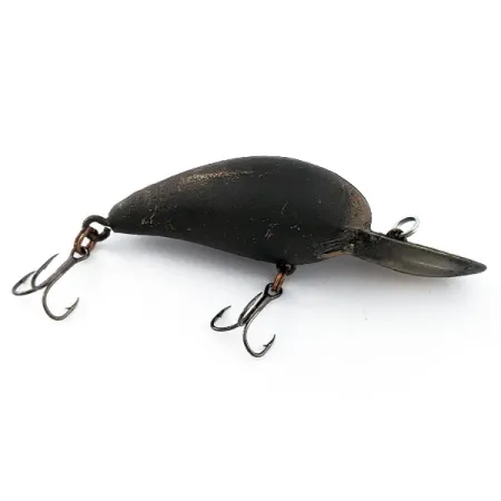 Tämä mattamustaksi uudelleenmaalattu 11 gramman (2/5 oz) vaappu on klassinen Bomber Model 6A, tuotekoodiltaan 20757. Yhdysvalloista kotoisin oleva Model A -sarjan viehe on 5 cm (2") pitkä, ja siinä on kookas uintilevy, jonka avulla se sukeltaa 1,8–2,4 metrin (6–8 ft) syvyyteen. Kustomoitu musta viimeistely peittää koko rungon, ja sitä täydentävät yksinkertaiset punertavat silmät päässä. Tämä kelluva ja äänekäs viehe sisältää sisäisen räminäkammion, mikä tekee siitä toimivan valinnan heittokalastukseen tai uisteluun hauen ja kuhan pyynnissä. Vieheen kunto on arvioitu asteikolla 3/5, ja siinä näkyy käytön jälkiä aiemmista kalastusreissuista, vaikka se on rakenteellisesti täysin ehjä. Vatsassa ja pyrstössä on pari kolmihaarakoukkuja, joista etummainen sijaitsee heti leveän uintilevyn takana.