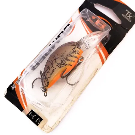 Tämä tasan 9 g (1/3 oz) painava vintage-vaappu edustaa merkittävää tuotantokautta Ecuadorissa. Runko on 5,5 cm (2 1/4") pitkä ja siinä on yksityiskohtainen rapukuvio, jossa on kirkkaan oranssi vatsa ja ruskehtava selkä tummilla anatomisilla viivoilla. Model 7A Baby Striper on kelluva syvännevaappu, joka on suunniteltu kalastamaan 2,4–3,0 metrin (8–10 ft) syvyydessä. Kalastajat käyttävät tätä kokoa yleensä heittoon tai uisteluun kuhaa ja haukea pyydettäessä. Tämä yksilö on käyttämätön ja säilynyt alkuperäisessä kirkkaassa pakkauksessaan, jolloin tehtaan viimeistely ja koukut ovat täydellisessä kunnossa. Kirkas uintilevy on integroitu lujasti nokkaan, mikä on Model A -sarjan rakenteen tunnusmerkki. Tuotekoodi: 10284.