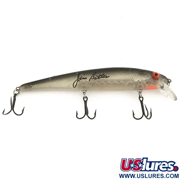 Tämän 14 g (1/2 oz) minnow-vaapun runko kimaltelee läpikuultavassa XCHO-viimeistelyssä korostaen monimutkaista sisäistä suomukuviointia ja BASS-ammattilaisen Jim Bitterin klassista nimikirjoitusta. Tämä Yhdysvalloissa valmistettu Bomber Pro 15A (tuotekoodi 7474) on 12 cm (4 3/4") pitkä, ja se on suunniteltu suspendoivaksi, mikä pitää sen vakaana vesipatsaassa pysäytysten aikana. Kirkasta runkoa korostavat tumma hiilenharmaa selkä, kirkkaanpunaiset silmät ja hienovaraisella oranssilla kurkkulaikku, tarjoten eläväisen profiilin sekä heitto- että uistelukäyttöön. 7474-mallin sisällä on räminäkammio, joka antaa akustisen profiilin täydentämään sen visuaalista vetovoimaa. Tämä yksilö on 5/5-kunnossa, ja siinä on alkuperäiset varusteet, mukaan lukien kolme terävää, mustalla viimeistelyllä varustettua kolmihaarakoukkua ja puhdas uintilevy. Viehe on suunniteltu saavuttamaan 1,2–1,8 metrin (4–6 jalkaa) syvyys, ja se on edelleen keräilijöiden suosikki, jotka arvostavat Jim Bitter -sarjan historiallista yhteyttä ammattilaiskilpailujen menestykseen. Kyljessä oleva nimikirjoitus on huomattavan selkeä ja hyvin säilynyt.