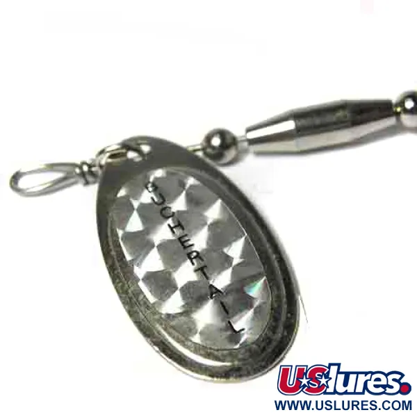 Nikkelöidyt lipat, joissa on selkeä holografinen suomukuvio, tunnistavat tämän Buchertail 500:n klassiseksi keskikokoiseksi lipaksi. Tämä 17 g (3/5 oz) painava Joe Bucherin luomus on varustettu hopeanvärisillä metallihelmillä painotetulla rungolla, joka tarjoaa tarvittavan painon pitkiin heittoihin kaislikoiden reunoille tai uponneiden puiden päälle. Tuuhea musta bucktail on kiinnitetty erottuvalla punaisella lankasidoksella, joka toimii iskupisteenä aivan perässä olevan kolmihaarakoukun edessä. Tämä yksilö, tuotekoodiltaan 0017, edustaa merkin maineen mukaista kestävää amerikkalaista laatua, joka on suunnattu suurten haukien ja muskyjen pyyntiin. Lipan heijastava hologrammitarra on edelleen kirkas, ja se on suunniteltu maksimoimaan valon välke eri veden kirkkauksilla. Fyysiseltä kunnoltaan viehe on arvosanalla 4/5, puhtaana ja hyvin hoidettuna. Siinä on järeä lankakiinnityslenkki perukkeen varmaa kiinnitystä varten, mikä on Joe Bucherille tyypillistä yksinkertaista ja tehokasta mekaniikkaa.