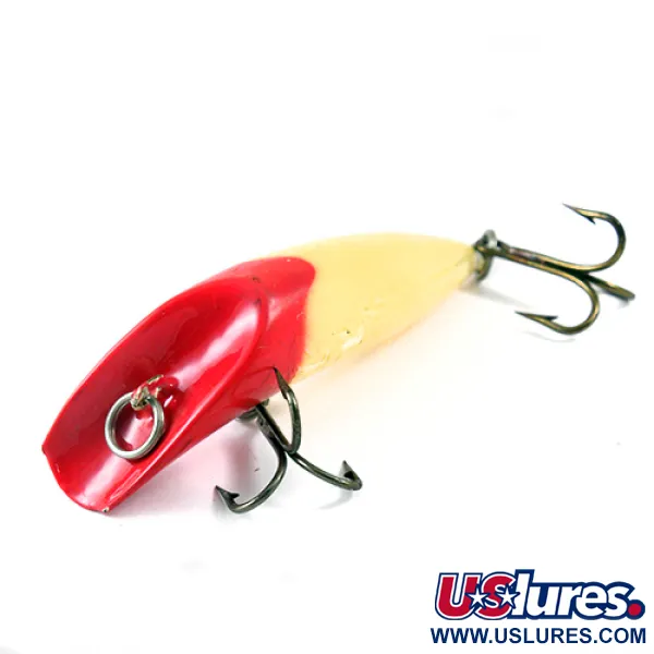 Tämä 28 gramman (1oz) painoinen vintage-löytö edustaa tuotemerkin perinteistä onttoarunkoista rakennetta. Syvänpunainen pää vaihtuu kermanvalkoiseen runkoon, mikä on erittäin näkyvä väritys petokalojen kalastukseen erilaisissa vesiolosuhteissa. Tarkalleen 10 cm (4") pitkässä, tuotekoodilla 1236 varustetussa yksilössä on klassinen kovera turpa, joka toimii kiinteänä uintilevynä. Varustukseen kuuluu kaksi vatsaan ja pyrstöön kiinnitettyä kolmihaarakiukua sekä vankka uistinrengas siiman kiinnityspisteessä. Kunto on arvostettava 4/5, ja uistimessa on edelleen keräilijöiden arvostama sileä, kiiltävä pinta. Kanadassa valmistetut vieheet tunnetaan erottuvasta profiilistaan ja huomattavasta heittopainostaan.