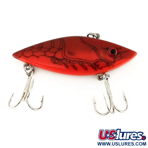 Tämä 9 g (1/3 oz) painava uppoava lipless-vaappu on suunniteltu tehokkaaseen esittelyyn eri syvyyksissä kelausnopeudesta riippuen. Cotton Cordell valmisti Bait Bonanza -mallin, tuotekoodilla 9585, monipuoliseksi työkaluksi sekä heittokalastukseen että uisteluun. 6 cm (2 1/4") rungossa on silmiinpistävä punainen viimeistely, jota koristaa yksityiskohtainen musta rapun kuviointi. Monimutkaiset viivat jäljittelevät äyriäisen kuoren ja jalkojen anatomiaa. Tämä Yhdysvalloissa valmistettu yksilö on 5/5-kunnossa, ja sen maalipinta sekä koukut ovat erinomaisessa tilassa. Tämän profiilin kohdelajeja ovat ahven, kuha, taimen ja lohi. Siimalenkki on sijoitettu selkämykseen, mikä on tyypillinen kokoonpano lipless-malleille vakaan uinnin varmistamiseksi eri kelausnopeuksilla.