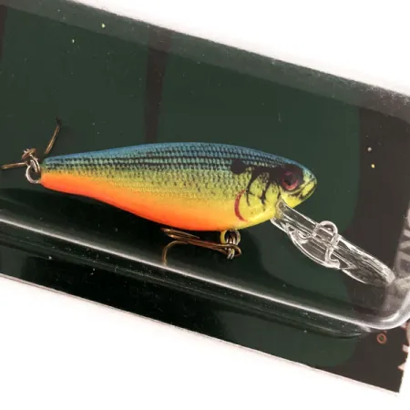 Kirkkaan oranssinpunainen vatsa takaa hyvän näkyvyyden alta päin tässä 4 g (1/8 oz) painoisessa Cotton Cordell C.C. Shad -vaapussa. Tämä 4,5 cm (1 3/4") pituinen viehe tunnetaan tuotekoodilla 12920, ja se on suunniteltu kelluvaksi, rämiseväksi työkaluksi erityisesti ahvenen ja kuhan kalastukseen. Värityksessä on syvänsininen selkä, joka vaihtuu keltavihreisiin suomukylkiin, joita koristaa tumma täplä kiduskannen takana. Tämä yksilö on käyttämätön, ja siinä on kirkas, läpinäkyvä uintilevy sekä alkuperäiset pronssiviimeistellyt koukut. Kalastustekniikasta riippuen se saavuttaa 1,8 metrin (6 ft) syvyyden heittämällä tai jopa 4 metrin (13 ft) syvyyden vetouistelussa. Ohut, litteäkylkinen rakenne on suora osoitus Cotton Cordellin valmistusperinteestä Hot Springsissä, Arkansasissa, ja pakkaus vastaa vuoden 2012 tuotantostandardeja.