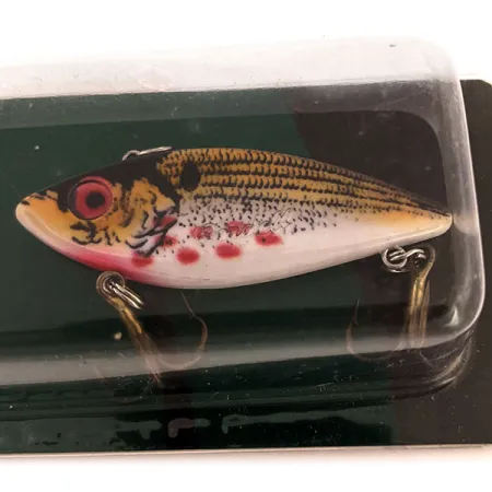 Kirkkaanpunaiset silmät yhdistettynä selkeisiin karmiininpunaisiin "veripisteisiin" kyljessä määrittelevät tämän 7 g (1/4 oz) lipless crankbait -vaapun ulkonäön. Tasan 5 cm (2") pitkä viehe edustaa Cotton Cordellin perintöä ääntä pitävissä vieheissä, jotka on suunniteltu vaihteleville syvyyksille. Viimeistelyssä on kullanvärinen suomukuvio yläosassa, joka muuttuu saumattomasti valkoiseksi vatsaksi. Tuotekoodilla 12921 tunnistettava upottava rattler on rakennettu sekä heitto- että uistelutekniikoihin tavoiteltaessa lajeja kuten ahven, hauki tai taimen. Käyttämättömänä tuotteena alkuperäisessä pakkauksessaan viehe on säilyttänyt tehdaskuntonsa (kuntoluokitus 6). Kultasävyiset kolmihaarakoukut ovat kirkkaat ja kunnolla kiinni, ja pakkauksen kääntöpuolella kerrotaan valmistajan historiasta alkaen Hot Springsistä, Arkansasista.