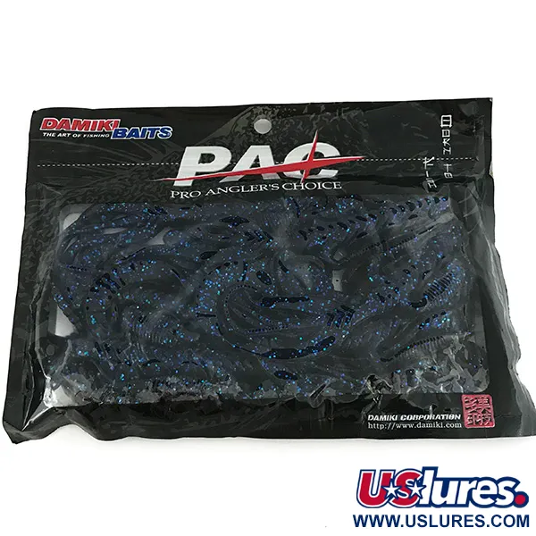 Syvän sininen pigmentti yhdistettynä eloisaan siniseen mikrokimalteeseen määrittää näiden 7" (18 cm) creature-jigien visuaalisen ilmeen. Tuotekoodilla 7096 tunnettu Monster Miki sisältää monimutkaisen rakenteen, jossa on uritettu runko, sivulisäkkeet ja kaksi nauhamaista pyrstöä. Vaikka Damiki on tunnettu kansainvälinen merkki, tämä erityinen Pro Angler's Choice (PAC) -sarja on valmistettu Yhdysvalloissa, mikä merkitsee paikallisen tuotannon kautta Amerikan markkinoille. Pakkaus havainnollistaa muotoilun monipuolisuutta ja ehdottaa kokoonpanoja Texas-rigiin, Drop-shotiin tai kookkaaksi traileriksi hapsujigiin (skirted jig). Kaikki pakkauksen 8 kappaletta ovat käyttämättömiä, säilyttäen pehmytmuovimateriaalin alkuperäisen rakenteen ja kestävyyden. Lisäkkeiden uritettu pinta tarjoaa merkittävän tuntoeron perinteisiin sileäkylkisiin lisko- tai rapujäljitelmiin verrattuna.
