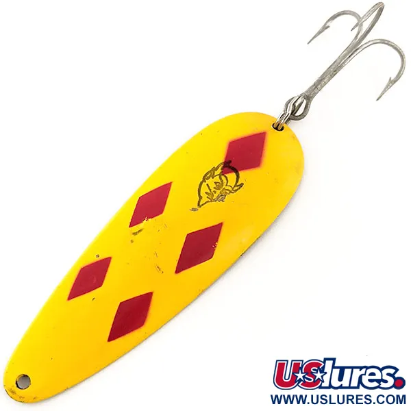 Kuntoarvio on 4/5, maalipinnassa on hieman kevyttä kulumista ja messingissä vähäistä ikääntymistä, mutta se on säilynyt kirkkaana ja puhtaana. Lusikan kovera muoto on yhdistetty vintage-kolmihaarakoukkuun tukevan uistinrenkaan välityksellä. Kokonaisuus on tehty raskasta heittokalastusta tai uistelua varten. Lou Eppingerin omat muotit antavat metallille sen ominaisen kaarevuuden, joka on säilynyt lähes muuttumattomana yli sata vuotta. Siiman kiinnitysreikä on puhdas ja hyvin keskitetty kapeaan päähän. Tämä Amerikassa valmistettu klassikko edustaa "Five of Diamonds" -kuviota juuri sellaisena kuin keräilijät sen haluavat löytää.