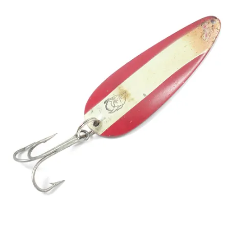 Tämä 9 cm (3 1/2") pituinen Eppinger-lusikkauistin on varustettu selkeällä punavalkoisella nikkeliviimeistelyllä, joka on ollut kalastajien vakiovaruste jo yli vuosisadan ajan. Tässä 28 gramman (1 oz) rungossa, jonka tuotekoodi on 2092, on klassinen pirunpää-logo maalipinnan valkoisen raidan keskellä. Vieheen kääntöpuolella on kirkas nikkelipinta, johon on stanssattu teksti "DARDEVLE DETROIT, U.S.A.", mikä tekee siitä palan Michiganin rikastuttamaa urheilukalastushistoriaa. Tämä yksilö on kuntoluokassa 4/5; siinä on pintajälkiä ja pieniä maalivaurioita kärjissä merkkinä aiemmasta käytöstä, mutta se on muuten säilynyt hyvässä kunnossa. Suuri, hopeanvärinen kolmihaarakoukku on tukevasti kiinni, joten uistin on valmis aggressiivisten petokalojen pyyntiin niin heittokalastuksessa kuin uistelussakin. Paksu metallirakenne on suunniteltu kestämään kovaa rasitusta taisteltaessa suurten kalojen kanssa syvissä vesissä tai voimakkaassa virrassa.