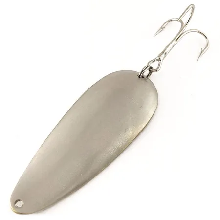 Tämä koveralle puolelleen tunnusomaisilla merkinnöillä "DARDEVLET", "DETROIT" ja "USA" leimattu lusikkauistin on hieno osa Eppinger-yhtiön kalastushistoriaa. Tämä mattahopeinen yksilö, tuotekoodiltaan 12261, on pituudeltaan 7 cm (2 3/4") ja painoltaan 21 g (3/4 oz), mikä tekee siitä vankan valinnan syvällä olevien kalojen tavoittamiseen. Puhdas, heijastamaton pinta tarjoaa erikoistuneen esitystavan verrattuna kiiltäviin malleihin, ja se toimii luotettavasti kirkkaissa vesissä. Uistin on erinomaisessa kunnossa (arvosana 5/5), siinä on tasainen pinta ja vahva kolmihaarakoukku. Vaikka Eppinger siirsi tuotannon Dearborniin vuonna 1959, keräilijät arvostavat suuresti näitä Detroit-leimattuja uistimia niiden historiallisen yhteyden vuoksi Lou Eppingerin alkuperäisiin Michiganin juuriin. Pisaramainen muoto ja tarkka painonjakauma on suunniteltu tehokkaaseen heitto- ja uistelukalastukseen.