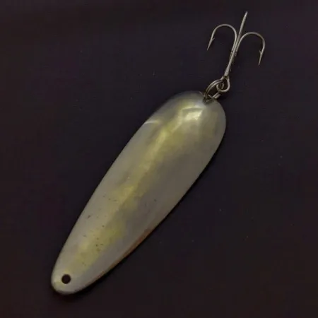 Koveralle puolelle lyöty 'DARDEVLE DETROIT U.S.A.' -leima tunnistaa tämän metalliuistimen Eppingerin klassikoksi 1900-luvun puolivälistä. Pituudeltaan 3 1/2" (9 cm) oleva nikkelipinnoite toimii luotettavana houkuttimena heijastamalla valoa vesipatsaan läpi. 28 g (1 oz) kokonaispaino tekee tästä tukevan valinnan vastatuuleen heittämiseen tai merkittävien syvyyksien tavoittamiseen hauen tai muskyn kalastuksessa. Kuntoarvio on 4/5, ja pinnoitettu pinta säilyttää kirkkaan heijastuksen leveässä, pisaranmuotoisessa rungossa. Historiallisesti 1950-1980-luvuille sijoittuva yksilö on edelleen toimiva esimerkki detroitilaisesta välinevalmistuksesta. Tämä lusikkauistin on luetteloitu tuotekoodilla 24605.