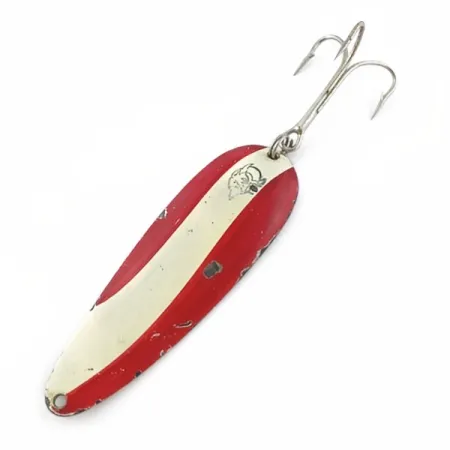 Tämä 28 g (1 oz) painava tukeva lusikkauistin on aito pala amerikkalaista kalastushistoriaa 1950-luvulta. Dardevle Detroit on helppo tunnistaa perinteisestä Red Devle -kuviostaan, joka koostuu syvänpunaisesta rungosta ja sen keskellä kulkevasta kermanvärisestä raidasta. Metallirungon pituus on 9 cm (3 1/2"), ja sen ylälenkin lähelle on stanssattu ikoninen paholaisen pää -logo, joka on Eppingerin valmistusperinnön tavaramerkki. Kuntoluokituksen ollessa 4/5 uistimessa on nähtävissä maalikulumaa ja pieniä kolhuja reunoissa sekä rungon pinnalla, mikä vain korostaa sen autenttista luonnetta raskaaseen heittokalastukseen tai uisteluun käytettynä välineenä. Alkuperäinen hopeanvärinen kolmihaarakoukku on edelleen tukevasti kiinni takapuolen uistinrenkaassa. Tämä yksilö, tuotekoodiltaan 23891, on osoitus kestävästä rakenteesta, jonka ansiosta nämä lusikat säilyivät kalastuspakkien vakiovarusteina vuosikymmenten ajan.