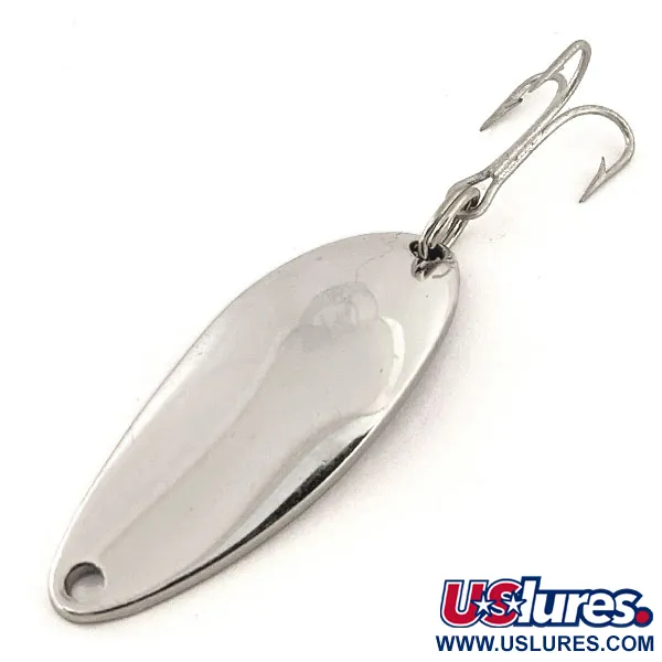 Tämän nikkelipintaisen lusikkauistimen koveralle puolelle on leimattu selkeästi "DEVLE-DOG 5200 DETROIT USA", ja se edustaa klassista lukua Eppingerin valmistushistoriassa. Kooltaan 4 cm (1 1/2") ja painoltaan 7 g (1/4 oz) oleva uistin tarjoaa kompaktin profiilin heittokalastukseen tai uisteluun. Kiillotettu Nickel-viimeistely on valittu sen voimakkaan välkkeen vuoksi, mikä tekee siitä luotettavan valinnan kirkkaaseen veteen, jossa se jäljittelee pikkukalojen luonnollista ulkonäköä. Tässä yksilössä, tuotekoodi 12822, on kolmihaarakoukku ja uistinrengas, jotka osoittavat Eppingerin Detroitissa vuodesta 1906 lähtien vakiinnuttamaa kestävyyttä. Kuntoarvio on 5/5, sillä metallipinnat ovat puhtaat ja vailla merkittävää kulumista. Leima osoittaa sen olevan peräisin ajalta ennen yrityksen siirtymistä Dearborniin vuonna 1959, mikä korostaa sen historiallista yhteyttä merkin varhaiseen menestykseen.
