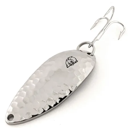 Vasaroitu nikkeli tarjoaa loistavan, valoa pyydystävän tekstuurin tämän lusikan etupuolelle, viimeistely on suunniteltu korkeaa näkyvyyttä varten. Painoltaan 3/5oz (16g), tämä Eppinger Dardevle Devle Dog 5400 tunnistetaan tuotekoodilla 13067. Ikoninen paholaisen pää -logo on lyöty selkeästi kuvioidun puolen keskelle, kun taas sileällä kääntöpuolella on syvät kaiverrukset mallinimelle ja valmistuspaikalle Dearborn, Michigan. Tämä yksilö on 5/5-kunnossa, siinä on kirkas, puhdas pinta ja alkuperäiset varusteet, mukaan lukien tukeva kolmihaarakoukku, joka on kiinnitetty uistinrenkaalla. Eppinger on käyttänyt näitä omia muottejaan Michiganin tehtaallaan muutettuaan Detroitista vuonna 1959, säilyttäen raskaan rakenteen, johon keräilijät ja kalastajat ovat luottaneet yli vuosisadan ajan. Kärkilenkki on vapaa ja hyvin muotoiltu heitto- tai uisteluun.