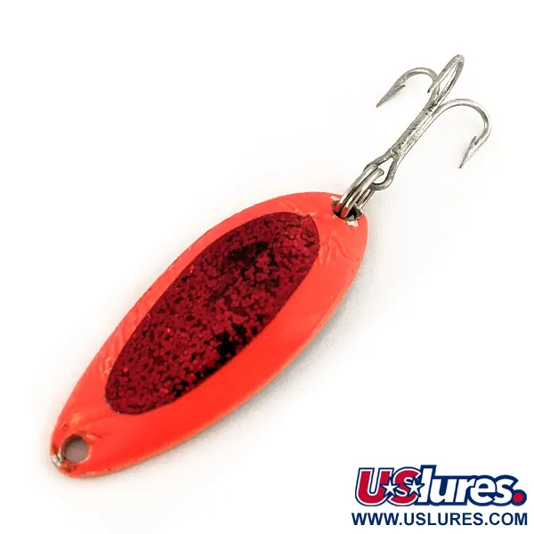 Tämä 7 gramman (1/4 oz) painoinen kompakti lusikkauistin on monipuolinen valinta kevytvälinekalastajille, jotka tavoittelevat eri makean veden lajeja. Pituudeltaan 4 cm (1 1/2") oleva Dardevle Devle Dog 7900 UV (tuotekoodi 12262) kantaa Eppinger-merkin perinteitä, joka on valmistanut korkealaatuisia vieheitä Michiganissa vuodesta 1906 lähtien. Red / Nickel -viimeistelyyn on yhdistetty erottuva, teksturoitu tumma keskiosa, joka luo ainutlaatuisen visuaalisen vaikutelman. Ultraviolettivalossa ulompi oranssinpunainen maali reagoi kirkkaalla hehkulla, kun taas tumma keskiosa pysyy mattaisena, tarjoten korkean kontrastin kohteen hämärissä olosuhteissa. Varustukseen kuuluu terävä kolmihaarakoukku, joka on kiinnitetty vahvalla uistinrenkaalla perään. Viehe on valmistettu Eppingerin omilla muoteilla Yhdysvalloissa, ja sen kovera runko saa aikaan sille ominaisen vaappuvan uinnin kelauksen aikana. Kuntoarvio on 5/5, ja metallipinta on kauttaaltaan puhdas ja kirkas. Ikoninen Dardevle-leima on painettu nikkelöityyn sisäpintaan, mikä vahvistaa sen olevan aito amerikkalainen klassikko.