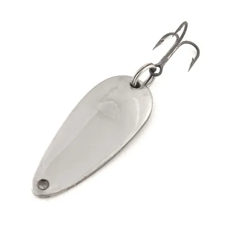 Peilikirkkaaksi kiillotettu nikkelipinta tässä klassisessa lusikassa takaa erinomaisen näkyvyyden kirkkaassa vedessä kalastettaessa. Tasan 3/16 oz (6 g) painava Eppinger Dardevle Midget on säilyttänyt asemansa ultrakevyen kalastuksen harrastajien suosikkina, jotka arvostavat yhdysvaltalaista laatua. Kääntöpuolella on selkeä, syvälle stanssattu teksti "DARDEVLE MIDGET U.S.A.", mikä on osoitus Dearbornin tehtaalta Michiganista tulevasta ammattitaidosta. Pituudeltaan 1 1/2" (3,5 cm) oleva pitkänomainen ja kovera profiili on suunniteltu erityisesti heittokalastukseen, jossa vaaditaan huojuvaa uintiliikettä. Tämän yksilön koukut ja renkaat ovat erittäin hyvässä kunnossa; siinä on tukeva uistinrengas ja terävä kolmihaarakoukku, jossa on vain vähän käytön jälkiä. Kuntoarvostelu on 5/5, ja uistin vaikuttaa lähes koskemattomalta. Tuotekoodilla 12825 listattu viehe on säilyttänyt ne sileät reunat ja tarkan stanssauksen, jotka ovat ominaisia Eppingerin omille, yli vuosisadan käytössä olleille muoteille.