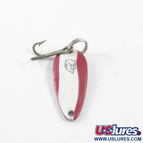 Klassinen puna-valkoraitainen kuvio koristaa tämän Eppinger Dardevle Skeeter -lusikan kuperaa puolta, joka on edelleen ultralight-kalastajien perusvaruste. Tuotekoodilla 1440 varustettu 1/16oz (2g) yksilö osoittaa detroitilaisen valmistajan omistautumista laadulle. Tässä 1" (2,3cm) lusikkauistimessa on ikoninen paholaisenpää-logo maalatulla puolella, kun taas kääntöpuolella on kirkas nikkelipinta, johon on lyöty teksti ”DARDEVLE SKEETER U.S.A.”. Kunto on luokiteltu 5/5, sillä molempien puolten viimeistely on poikkeuksellisen puhdas. Tässä mallissa käytetään samaa koveraa geometriaa, jonka Lou Eppinger kehitti vuonna 1906 heittokalastukseen ja tasaiseen kelaukseen. Historiallisesti näiden vieheiden tehokkuus johti niiden sisällyttämiseen sotilaiden selviytymispakkauksiin, ja sama ammattitaito näkyy koukuissa ja uistinrenkaassa. Kalastettaessa hidas kelaus antaa koveran pinnan toimia tehokkaasti, vaikka vavan kevyt heilautus voi aiheuttaa värisevän liikkeen, jos kala seuraa perässä.