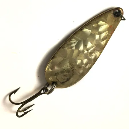 Vasaroidut suomukuvioinnit vangitsevat valon tämän klassisen Eppinger-lusikkauistimen messinkisellä pinnalla. Painoltaan 9g (1/3oz) ja pituudeltaan 4,5cm (1 3/4") oleva Dardevle Spinnie, tuotekoodiltaan 3707, edustaa legendaarisen Eppinger-malliston pienikokoisempia vieheitä. Koveraan puoleen on selkeästi meistetty "DARDEVLE SPIN-NIE" -nimi, joka on Lou Eppingerin Detroitissa vuonna 1906 perustaman yrityksen tunnusmerkki. Tässä yksilössä on Crystal-suomukuviointi, joka on suunniteltu antamaan selkeä välähdys tasaisessa kelauksessa erilaisissa olosuhteissa. Varustukseen kuuluu alkuperäinen kolmihaarakoukku, joka on kiinnitetty uistinrenkaalla. Vankka rakenne mahdollisti näiden vieheiden käytön ilmailun selviytymispakkauksissa sota-aikana. Kuntoarviolla 5/5 metalli on säilyttänyt kirkkaan ja puhtaan ulkonäön ilman merkittävää kulumista. Vaikka yritys muutti Dearborniin, Michiganiin vuonna 1959, tässä nähtävä perusmalli on säilynyt kalastajien suosikkina tehokkuutensa ja heittovarmuutensa ansiosta. Paino on keskitetty täydellisesti kokoon nähden, mikä mahdollistaa tarkat heitot tavoiteltaessa taimenta tai muita petokaloja pienemmissä vesistöissä.