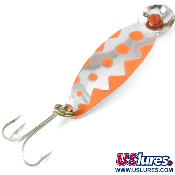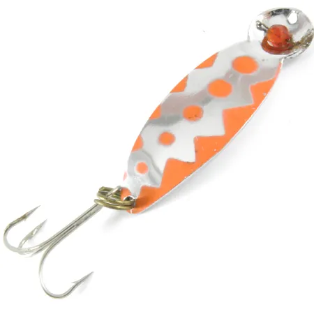 Tämä 1/2oz (14g) painoinen klassinen lusikka kantaa Errico-sarjalle ominaista ”One eye” -muotoilua. Nikkelöidyssä 3” (7,5 cm) rungossa on selkeä oranssi kuviointi, joka koostuu pisteistä ja keskellä olevasta siksak-raidasta, vaikka tuoteluettelossa väriksi on ilmoitettu Nikkeli / Punainen. Yksi punainen helmi on upotettu tukevasti uistimen päähän, mikä luo kolmiulotteisen katseenvangitsijan ja antaa mallille sen nimen. Lusikan kiillotetusta takapuolesta löytyy vaahteranlehtileima – yksityiskohta, joka on tyypillinen tämän aikakauden korkealaatuisille kanadalaisille kalastusvälineille. Uistin on varustettu uistinrenkaaseen kiinnitetyllä kolmihaarakoukulla ja löytyy luettelosta tuotekoodilla 3683. Kuntoluokitukseltaan uistin on 4/5, eli siinä on vain erittäin vähäisiä ikääntymisen merkkejä; nikkelipinnoite on säilyttänyt heijastavuutensa ja maalatut korostukset ovat säilyneet selkeinä.