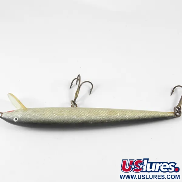 Kylkien kimaltelevat hopeiset ja kultaiset suomukuviot määrittelevät tämän suomalaisen alkuperäisvieheen. Pituudeltaan 12 cm ja painoltaan 6 g oleva viehe on hoikka ja salakkamaista profiilia noudattava, mikä on tyypillistä perinteiselle eurooppalaiselle muotoilulle. Finlandia Uistin, jonka tunnistaa vatsaan punaisella painetusta ”MADE IN FINLAND” -leimasta, on viimeistellyt tämän yksilön Natural-värityksellä. Värisävy vaihtuu tummanharmaasta selästä vaaleaan kermanväriseen vatsaan, ja keskiosassa on tiheä kimalle. Vieheessä on kaksi pronssattua kolmihaarakoukkua ja kirkas, matalauintinen muovilevy, joka on suunniteltu heitto- tai uistelukalastukseen. Tämä kyseinen viehe, tuotekoodilla 1294, on kunnoltaan 4/5, ja sen alkuperäiset koukut ja pinnoite ovat suurelta osin ehjät.
