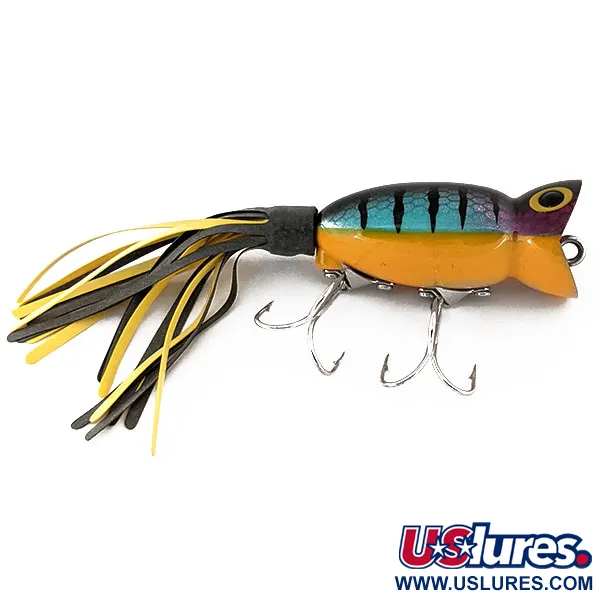 Museoarkisto: Fred Arbogast Hula Popper Pintaviehe, Tiger, 10g, Kumihapsu, #11302