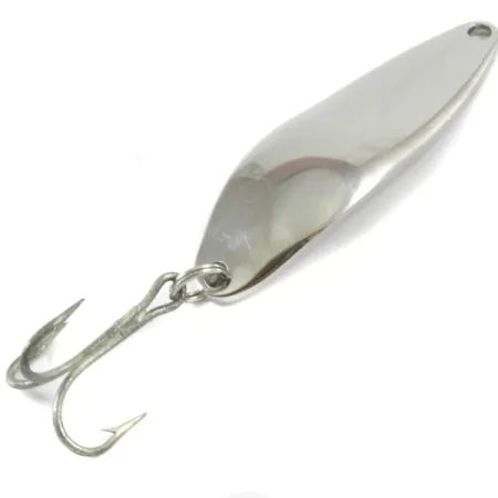 Sisäpinnan koveraan osaan selvästi leimattu GATOR-tunnus edustaa amerikkalaista uistimenvalmistusperinnettä vuodesta 1976. Tämä painava lusikkauistin painaa 35 g (1 1/4 oz) ja on pituudeltaan 8,7 cm (3 1/2"), mikä antaa sille tarvittavan tiheyden pitkiin heittoihin tai syvyyden säilyttämiseen uistelussa. Valmistaja on käyttänyt tässä mallissa korkealaatuista 304-ruostumatonta terästä, mikä varmistaa nikkelivärin voimakkaan heijastavuuden. Peräosaan on kiinnitetty vankka kolmihaarakoukku järeän uistinrenkaan avulla, ja se on mitoitettu vastaamaan suuria petokaloja, joille tämä viehe on suunniteltu. Tuotekoodilla 3286 tunnistettava yksilö on 5/5-kunnossa ja siinä on alkuperäinen peilikiilto koko rungossa.