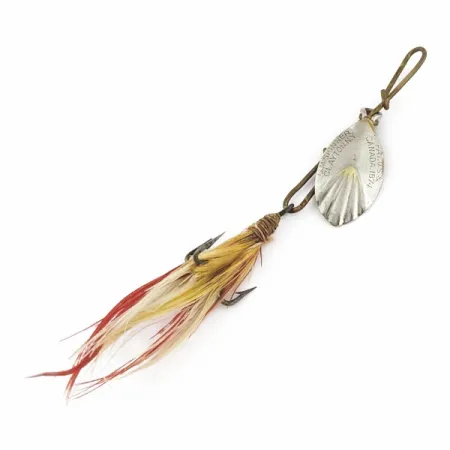 Tämän koon 1 lipan nikkelipintaisessa lehdessä on vuoden 1874 kanadalainen patenttileima ja perinteinen urallinen simpukkakuvio. Lehden etupuolella on Claytonista, New Yorkista kotoisin olevan valmistajan G.M. Skinnerin merkki, joka osoittaa alkuperäisen meistämisen tarkkuuden. Tämän tuotekoodilla 24500 tunnistetun yksilön kokonaispituus on 7 cm (2 3/4") ja paino 3,5 g (1/8 oz). Punaiset, keltaiset ja valkoiset höyhenet on sidottu tukevasti kolmihaarakoukkuun, mikä luo eloisan visuaalisen profiilin. Kuntoluokitukseltaan 5/5 oleva nikkelipinnoite on säilyttänyt kirkkaan viimeistelynsä urallisilla pinnoilla.