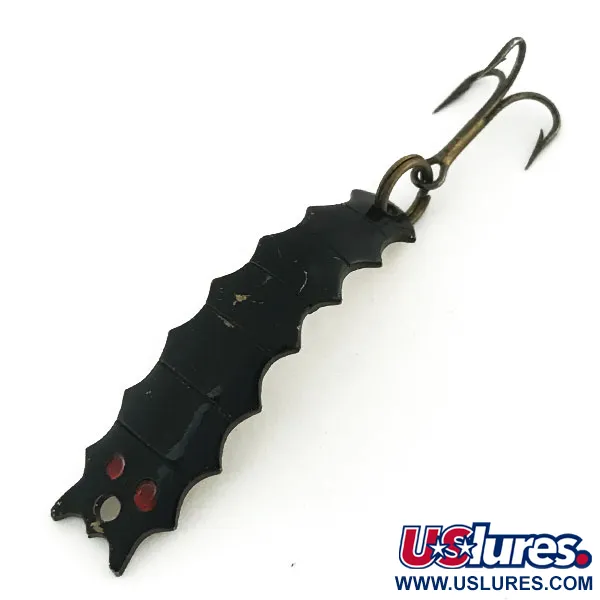 Punaiset silmät erottuvat Al's Goldfishin 3/16oz (4,5g) yksilön syvänmustasta rungosta. Tuotekoodilla 8622 varustettu Helgy on ainutlaatuinen USA:ssa valmistettu viehe, joka jäljittelee Hellgrammite-toukan jaokkeista siluettia. Pituudeltaan 1 3/4" (4,5cm) oleva kompakti viehe on varustettu tukevalla kolmihaarakoukulla, joka on kiinnitetty messinkisävyisellä uistinrenkaalla. Pinnoite on säilynyt erittäin hyvin, ansaiten 5/5 kuntoarvion puhtaista pinnoistaan ja hyvin säilyneistä maalatuista yksityiskohdistaan. Hienovarainen kullan hohde näkyy valon osuessa metallirungon harjanteisiin, mikä heijastaa tältä klassiselta merkiltä odotettua laadukasta käsityötä. Metalliosissa on pehmeä ikääntynyt sävy, mutta ne ovat rakenteellisesti kestäviä näyttelykäyttöön tai varovaiseen jokikalastukseen.