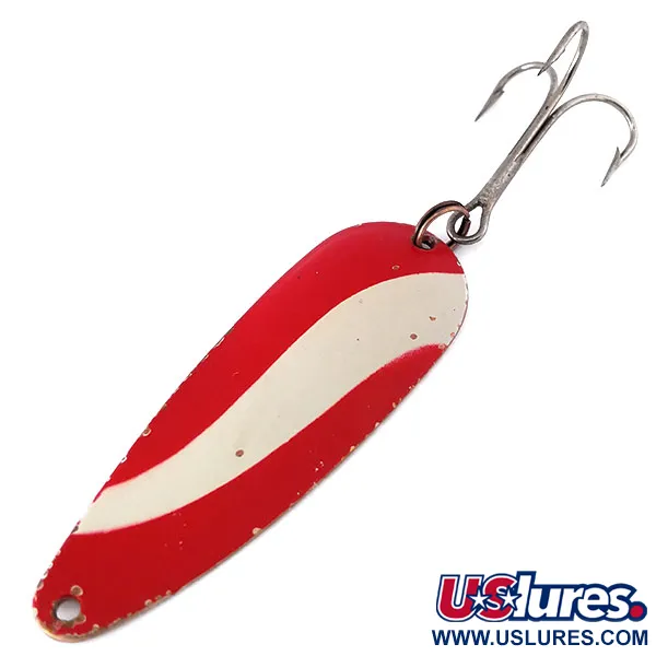 Tämän yksilön kuparisen taustapuolen selkeä ”Gypsy King 0” -leima kertoo uistimen olevan klassinen yhdysvaltalaisen Wellerin valmistama tuote. Pituudeltaan 6 cm (2 1/4") ja painoltaan 11 g (2/5 oz) olevan metallirunkoisen uistimen kuperalla puolella on perinteinen punavalkoinen vinoraitakuvio. Tämä värivalinta oli suosittu 1900-luvun puolivälin kalastajien keskuudessa, jotka arvostivat hyvää näkyvyyttä. Kääntöpuolella on alkuperäinen kuparipinta, jossa on vähäisiä, 4/5-kuntoluokitusta vastaavia ikääntymisen merkkejä. Pyrstöön on kiinnitetty uistinrenkaalla yksi kolmihaarakoukku, ja uistimen etupäässä on valmis kiinnitysreikä. Tuotekoodilla 10511 tunnistettavan lusikan rakenne korostaa vanhoille amerikkalaisille kalastusvälineille tyypillistä kestävää metallityötä.
