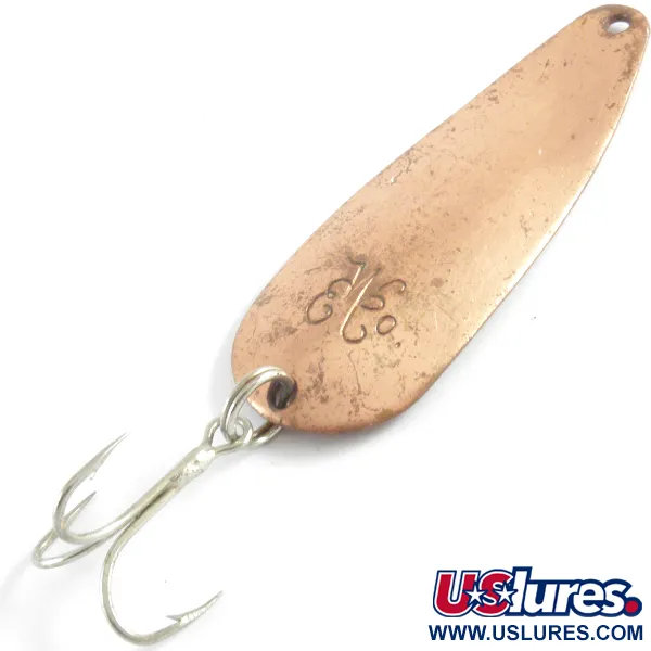 Kuparipinnat antavat erottuvan visuaalisen ilmeen tälle amerikkalaisvalmisteiselle lusikkauistimelle, joka on Wellerin valikoiman klassikkotuote. GyPSY KING 0 on pituudeltaan 6 cm (2 1/4") ja painoltaan 11 g (2/5 oz), ja se on valmistettu aikakaudelleen tyypillisestä paksusta metallista. Tähän uistimeen (tuotekoodi 4232) on leimattu mallinimi sisäpuolelle, ja sen ulkokaaressa on koristeellinen graafinen logo. Uistin on 4/5-kunnossa, ja sen pisaranmuotoinen pinta on puhdas ja hyvin hoidettu. Varustukseen kuuluu tukeva uistinrengas, jossa on terävä, hopeanvärinen kolmihaarakoukku. Kapenevassa päässä oleva kiinnitysreikä mahdollistaa suoran kytkennän lukkoon tai perukkeeseen.