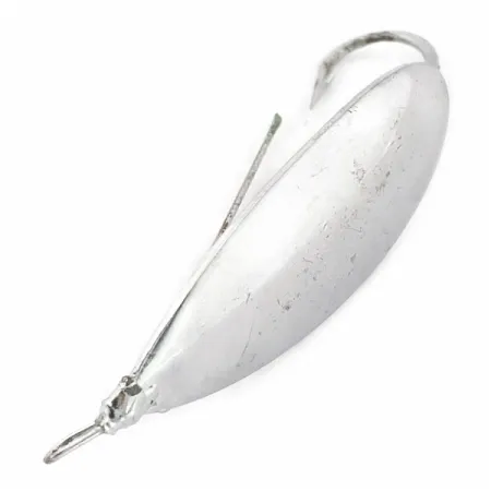 Tämä ruostumattomasta messingistä puristettu lusikkauistin on suunniteltu kestämään kovia olosuhteita. Herter's Olson Minnow -mallissa on siro, pitkänomainen 2 1/4" (5,5 cm) runko, joka jäljittelee pikkukalan profiilia. 1/4 oz (7 g) painoisena nikkeliviimeistely tarjoaa voimakkaan välkkeen veden alla. Yksihaarainen koukku on varustettu metallisella ruohosuojalla, mikä mahdollistaa heitot kasvillisuuden tai uppopuiden sekaan. Valmistajan ja mallin merkinnät on stanssattu suoraan rungon koveralle puolelle. Tämä tuotekoodilla 24567 kulkeva yksilö on kunnoltaan 4/5 ja siinä on puhdas, heijastava pinta.