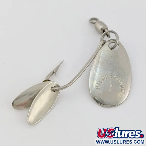 Nikkelipinnoite peittää tämän kompaktin 1/32 oz (1 g) lipan jokaisen pinnan. Pisaranmuotoiseen päälippaan on stanssattu tunnistus "HILDEBRANDT 1", ja se on paritettu kahden pienemmän, koukun lähelle sijoitetun lipan kanssa välkkeen maksimoimiseksi. Tämä Hildebrandt Spinners malli 24526 on vain 3/4" (2 cm) pitkä, ja se on rakennettu yksittäiskoukun ja tynnyrileikarin ympärille. Jokainen metalliosa on erittäin kiiltävä, ja sen kuntoluokitus on 5/5 kirkkauden ja kulumattomuuden ansiosta. Rakenteessa käytetään suoraan varteen kiinnitettävää välkkyvää lippaa, mikä on suunniteltu ultralight-kalastukseen tai virtaavan veden kalastustekniikoihin.