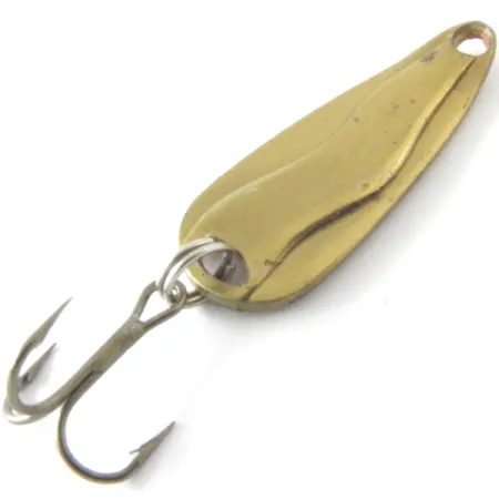 Tämä 3/16 unssia (4,5 g) painava kompakti lusikkauistin on varustettu selkeällä aaltomaisella pakotuksella, joka on ollut Luhr Jensen -valikoiman peruspilari vuosikymmenten ajan. 3 cm (1 1/4") pituisessa messinkirunkoisessa vieheessä on kirkas fluoresoiva vaaleanpunainen upotus koveralla puolella, ja se on erikoiskäsitelty UV-heijastavaksi näkyvyyden säilyttämiseksi syvemmissä vesikerroksissa. Tähän yksilöön, tuotekoodiltaan 4155, on lyöty "HOT SHOT W" -brändäys suoraan metalliin, mikä on osoitus sen USA-alkuperästä Oregonin Hood Riverin tuotantokaudelta. Varustukseen kuuluu yksi uistinrengas, joka yhdistää terävän kolmihaarakoukun lusikan peräpäähän. Kiillotetussa messinkipinnassa on lieviä säilytysjälkiä, mikä vastaa hyvin säilynyttä 4/5-kuntoa. Ylälenkki on siististi porattu, ja se on tarkoitettu suoraan siiman sitomiseen tai pienen lukkoleikarin lisäämiseen heitto- ja uistelukäyttöön.