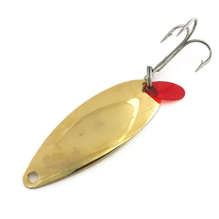 Tämä 5 cm (2") pituinen lusikkauistin on varustettu upealla Gold-viimeistelyllä, joka on säilynyt erittäin kirkkaana. Koveralla puolella oleva "JOHNSON'S SPRITE" -leima vahvistaa sen olevan USA-valmisteinen, mitä keräilijät arvostavat usein enemmän kuin myöhempää kiinalaista tuotantoa. Tässä 7 g (1/4 oz) mallissa, tuotekoodi 9323, on alkuperäiset varusteet, mukaan lukien hopeinen kolmihaarakoukku ja tunnusomainen punainen muovinen iskupiste takarenkaassa. Yksilön kunto on 5/5, pinta on peilikirkas ja koukku on puhdas sekä terävä.