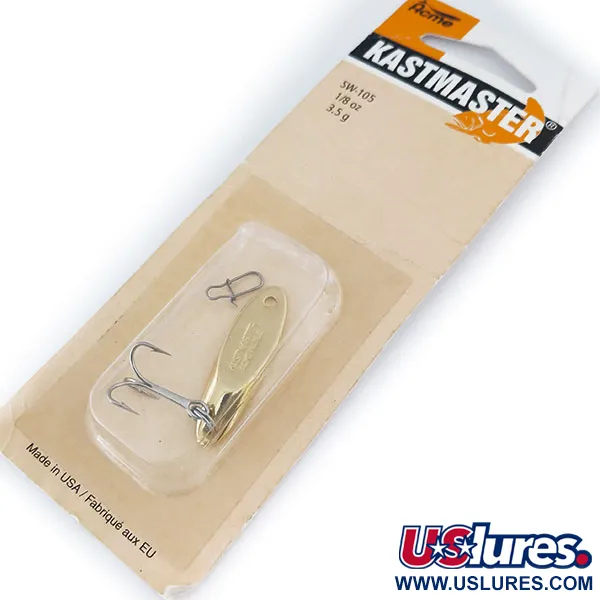 Kullanvärinen viimeistely täysmessinkisessä rungossa määrittää tämän Acmen 1/8 oz (3,5 g) painoisen lusikkauistimen. Pituudeltaan 1 1/2" (3,5 cm) uistin kantaa tuotekoodia 10909 (SW105/G) ja on säilynyt alkuperäisessä vintage-pakkauksessaan. Koska se on käyttämätön, yksilö on huippukunnossa, ja sen viimeistelyssä on amerikkalaisvalmisteisille välineille tyypillinen korkealaatuinen hohde. Kastmaster erottuu tasapainollaan, joka on saavutettu erityisellä seoksella, joka mahdollistaa uniikin uinnin sekä vajoamisen että kelauksen aikana. Tämä monipuolisuus tekee siitä perusvarusteen petokalojen pyyntiin erilaisissa ympäristöissä, syvän veden jigauksesta nopeisiin virtauksiin. Vieheen mukana tulee tehdasasenteinen kolmihaarakoukku ja lukkoleukki, mikä varmistaa, että se on valmis välittömästi kiinnitettäväksi kevyeen kalastuskokoonpanoon. Pakkauksen kääntöpuolella on yksityiskohtaiset tiedot sen laajasta soveltuvuudesta sekä makean että suolaisen veden lajeille, korostaen muotoilua, joka on pysynyt kokeneiden kalastajien suosikkina vuosikymmeniä.